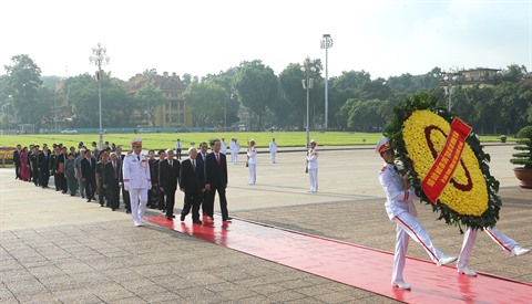 | Des dirigeants du Parti et de l’État rendent hommage au Président Hô Chi Minh. |