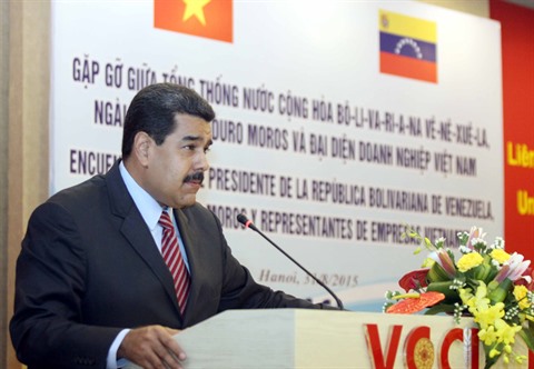 | Le président du Venezuela, Nicolas Maduro Moros, à la rencontre des entreprises vietnamiennes, en 2015 à Hanoï. |