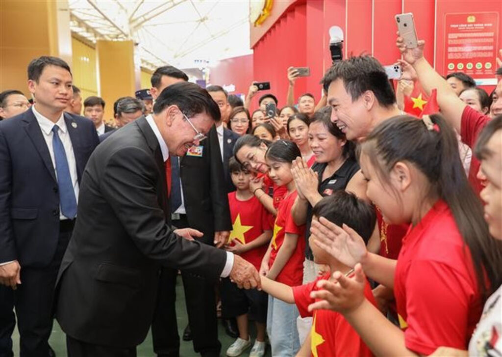 Les dirigeants lao et cambodgien ont visité l'espace central de l'exposition, intitulé "95 ans sous le drapeau directeur du Parti", organisé par le journal Nhân Dân (Peuple), qui retrace les étapes et les succès majeurs sous la direction du Parti ; l'espace "80 ans d'indépendance, de liberté et de bonheur" du ministère de la Culture, des Sports et du Tourisme ; un espace d'exposition du ministère des Affaires étrangères et le pavillon "Pour un avenir vert" présentant les initiatives de transition écologique du conglomérat vietnamien Vingroup.