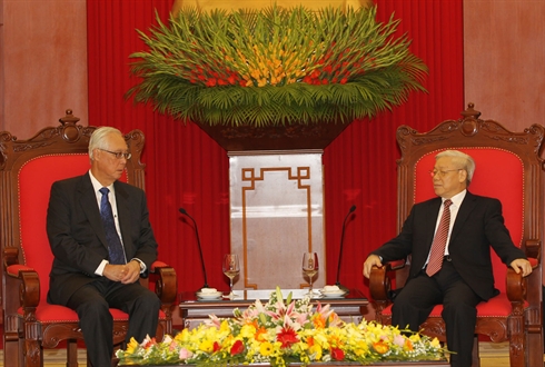 Le secrétaire général du Parti communiste du Vietnam, Nguyên Phu Trong, a estimé que Singapour est toujours l'un des importants partenaires en commerce de son pays, avant de demander que les visites et échanges soient maintenus, et que leur coopération dans divers domaines se développe davantage, notamment en commerce, dans l'investissement, l'éducation et la formation.