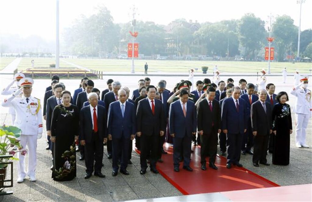 La délégation comprenait notamment le président de la République Vo Van Thuong, le Premier ministre Pham Minh Chinh, le président de l'Assemblée nationale, Vuong Dinh Huê, le secrétaire du Comité central du Parti et président du Comité central du FPV, Dô Van Chiên.