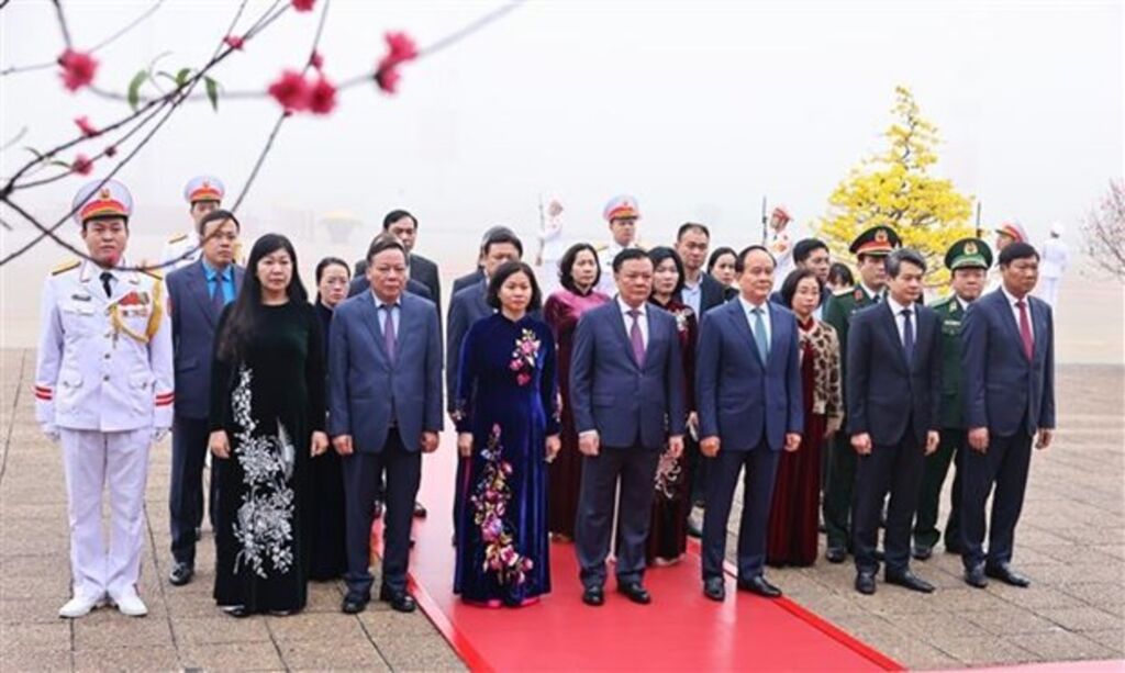 | Une délégation de Hanoï rend hommage au Président Hô Chi Minh en son mausolée. |