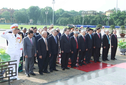 | Des hauts dirigeants du Vietnam sont allés fleurir le 18 mai le mausolée du Président Hô Chi Minh |