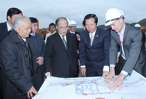| Le président de l'AN Nguyên Sinh Hùng sur le chantier d'exploitation des ressources minérales Nui Phao, province de Thai Nguyên. |