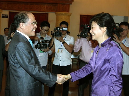| Le président de l'AN vietnamienne Nguyên Sinh Hùng et la présidente sud-coréenne Park Geun-Hye. |