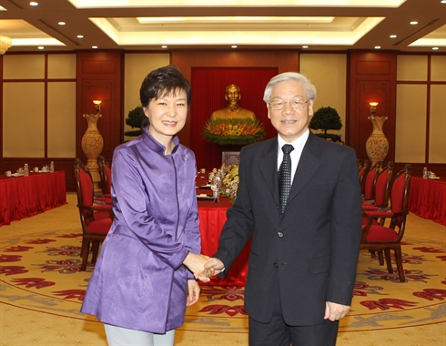 La présidente Park Geun-Hye a souligné que le gouvernement sud-coréen prennait toujours en haute considération le développement des relations avec le Vietnam et continuerait de promouvoir la coopération multiforme entre les deux pays, notamment encourager les entreprises sud-coréennes à venir investir dans ce pays et favoriser la vie des citoyens vietnamiens en République de Corée, notamment des familles multiculturelles vietnamo-sud-coréennes dont des mariées vietnamiennes.