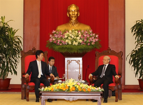 | Le secrétaire général du PCV, Nguyên Phu Trong (droite), a reçu le 14 juillet à Hanoi le ministre japonais des AE, Koichiro Gemba |