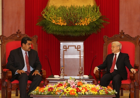 En recevant le dirigeant vénézuélien, le secrétaire général du Parti communiste du Vietnam (PCV), Nguyên Phu Trong, a qualifié sa visite d’«illustration vivante de l’amitié traditionnelle et de la coopération multiforme entre les deux pays».