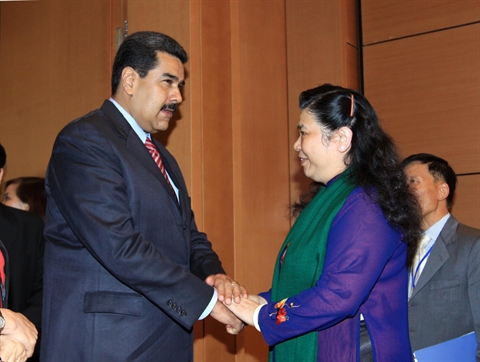 | La vice-présidente de l'Assemblée nationale vietnamienne Tong Thi Phong et le président vénézuélien Nicolas Maduro. |