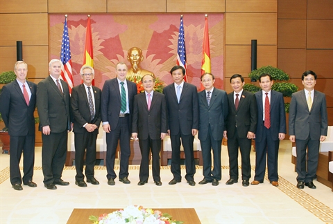 | Le président de l’Assemblée nationale du Vietnam Nguyên Sinh Hùng (5e, à gauche) reçoit le 6 mai à Hanoi une délégation de la Commission des relations extérieures de la Chambre des représentants des États-Unis. |