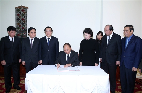 | Le Premier ministre Nguyên Xuân Phuc a écrit dans le registre de deuil. |