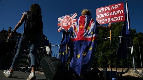 | Manifestation anti-Brexit devant le Parlement britannique, le 29 août 2019. |