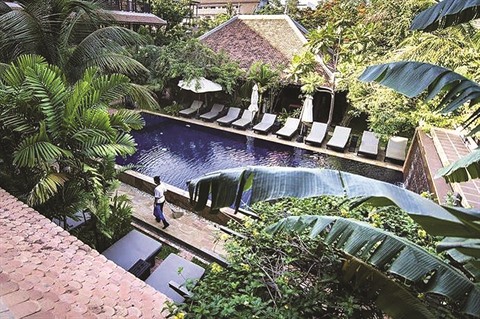 | Une vue de l'hôtel Siddharta Boutique à Siem Reap, au Cambodge. |