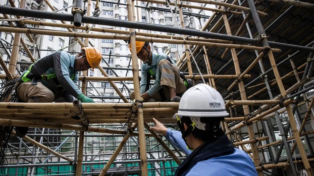 “Il faut avoir le cœur bien accroché”, souligne Mo Jia Yu, en apprentissage au Conseil de l’industrie de la construction (CIC) à Hong Kong. En équilibre deux étages au-dessus du vide, l’apprenti enserre une tige avec ses jambes tout en fixant une jointure, une compétence qu’il devra maîtriser pour espérer travailler un jour sur les échafaudages de bambou de Hong Kong.