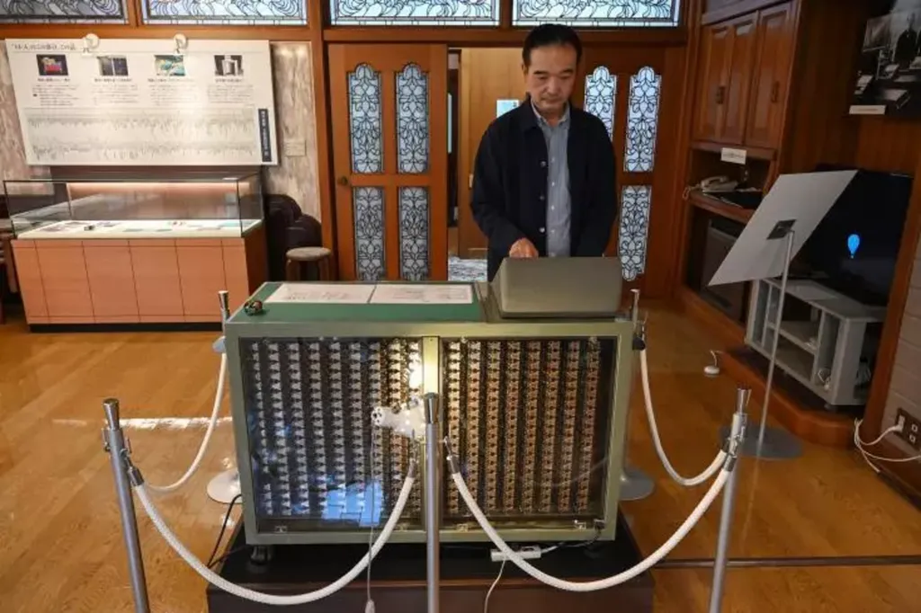 | Un guide fait une démonstration sur une calculatrice Casio 14-A, le 25 novembre au musée Toshio Kashio à Tokyo. |