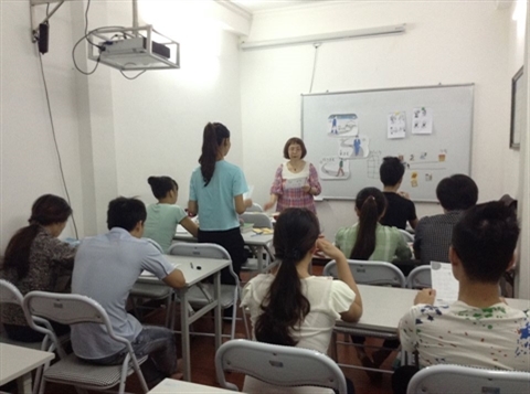 | Dans une classe de japonais à Hanoi. |