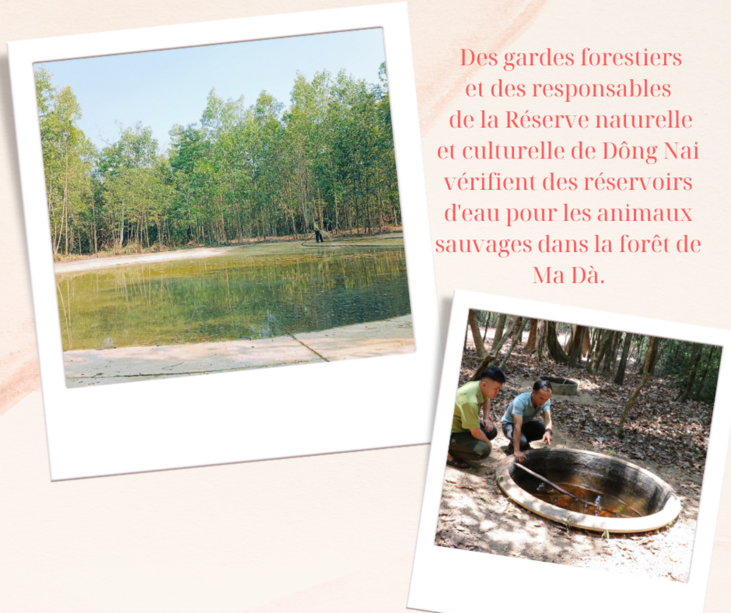 Toutes les deux semaines, les gardes forestiers et le personnel de la Réserve naturelle et culturelle de Dông Nai se rendent dans la forêt pour aider les animaux sauvages à faire face à la grave sécheresse en leur apportant de l’eau.