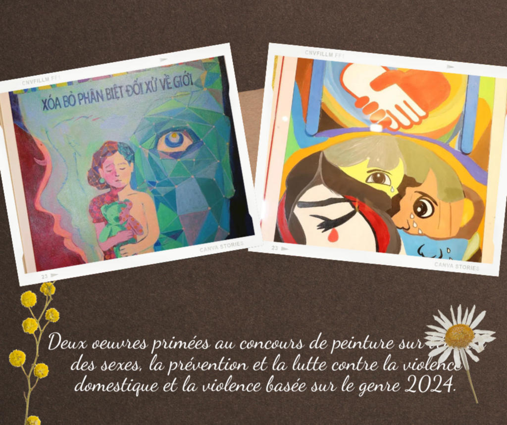 | L'oeuvre "Dire non aux violences conjugales" remporte le Premier prix au concours de peinture sur l’égalité des sexes, la prévention et la lutte contre la violence domestique et la violence basée sur le genre 2024. |