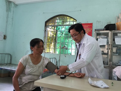 | Le docteur Lai Huu Tuyên examine une patiente au Centre de soins de la commune de Binh Hiêp. |