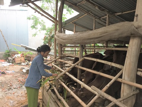 | Nguyên Thi Hiên, habitante de la commune de Binh Hiêp, nourrit le troupeau acquis grâce aux prêts à taux préférentiel de la commune destinés aux foyers en difficulté financière. |