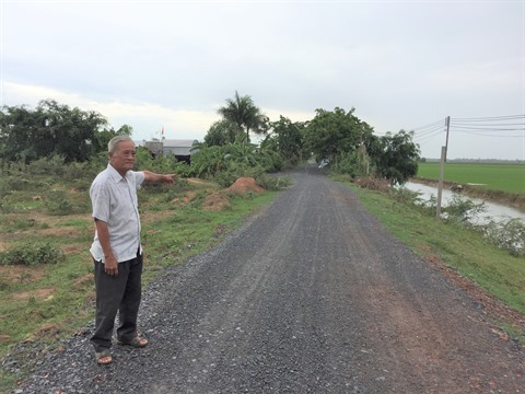| Huynh Ky Tâm, habitant de la commune de Binh Hiêp sur la route rurale Go Dua - Ông Lê, construite en 2017 et pour laquelle il a fait don de son terrain. |