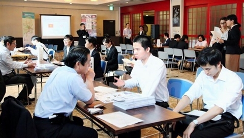 | Des étudiants vietnamiens et des recruteurs japonais. |