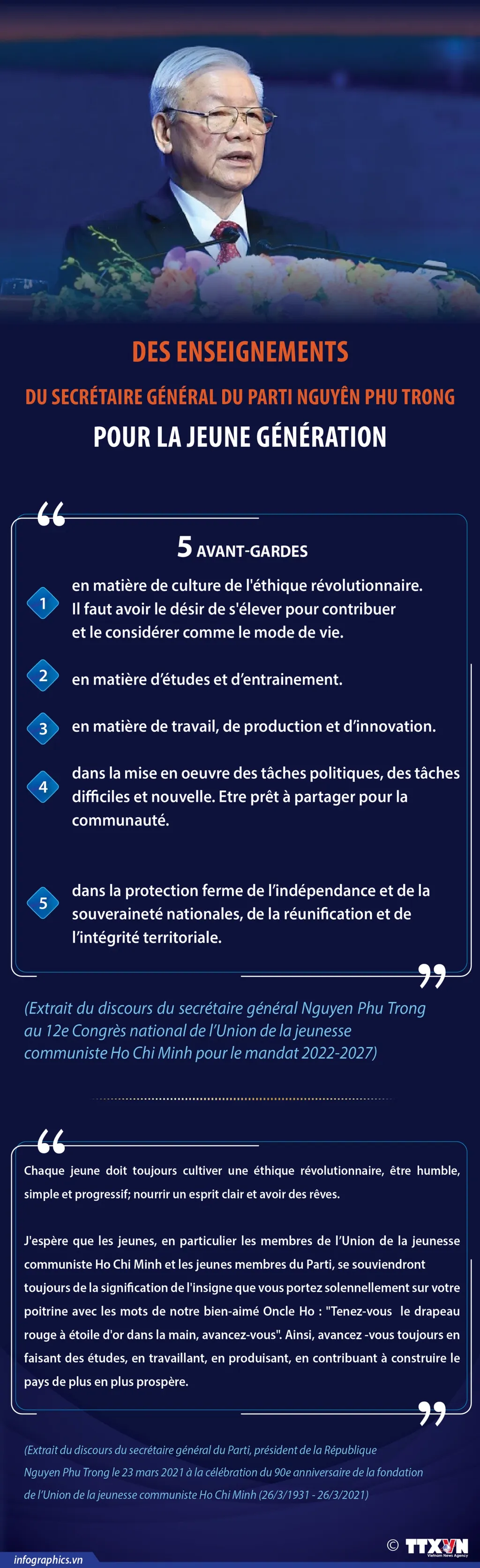 De son vivant, le secrétaire général (SG) du Parti, Nguyên Phu Trong, a toujours réservé une affection particulière aux jeunes et aux enfants. À chaque rencontre, le dirigeant les a toujours encouragé et affirmé la confiance du Parti, de l'État et du peuple dans les futurs propriétaires du pays.