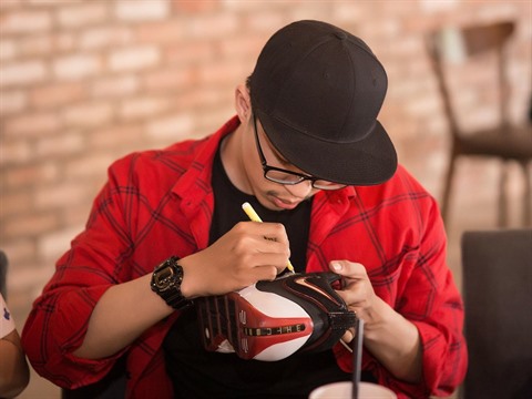 Ce qui paraît alors insolite, c’est que ce travail est venu à Kiêt Quach un peu par hasard : "Au début, j’étais vendeur de chaussures. Un jour, quand je n’ai pas pu vendre un lot de baskets roses pour hommes, je les ai peintes en noir et j’ai fini par les vendre. J’ai depuis perfectionné ma technique de personnalisation au point de pouvoir monter ma propre affaire".