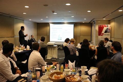 Guillaume Crouzet, directeur général de la CCIFV, responsable du Service d’appui aux entreprises Vietnam - France, a présenté aux participants la situation de l’investissement français au Vietnam, et vice versa, donné des chiffres sur les échanges commerciaux entre les deux pays, fait des remarques sur le marché vietnamien, les barrières tarifaires et non tarifaires, les possibilités d’assistance, de connexion au profit des entreprises françaises désireuses de s’installer au Vietnam.