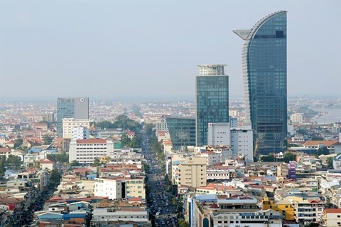| Vue panoramique de Phnom Penh, au Cambodge. |