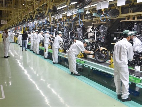 | Une chaîne de montage de motos de Honda Corporation dans la zone industrielle Dông Van II dans la province de Hà Nam. |
