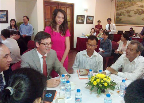 | Rencontre entre une délégation d'entreprises néerlandaises et des représentants des entreprises du delta du Mékong, le 8 mai à Cân Tho |
