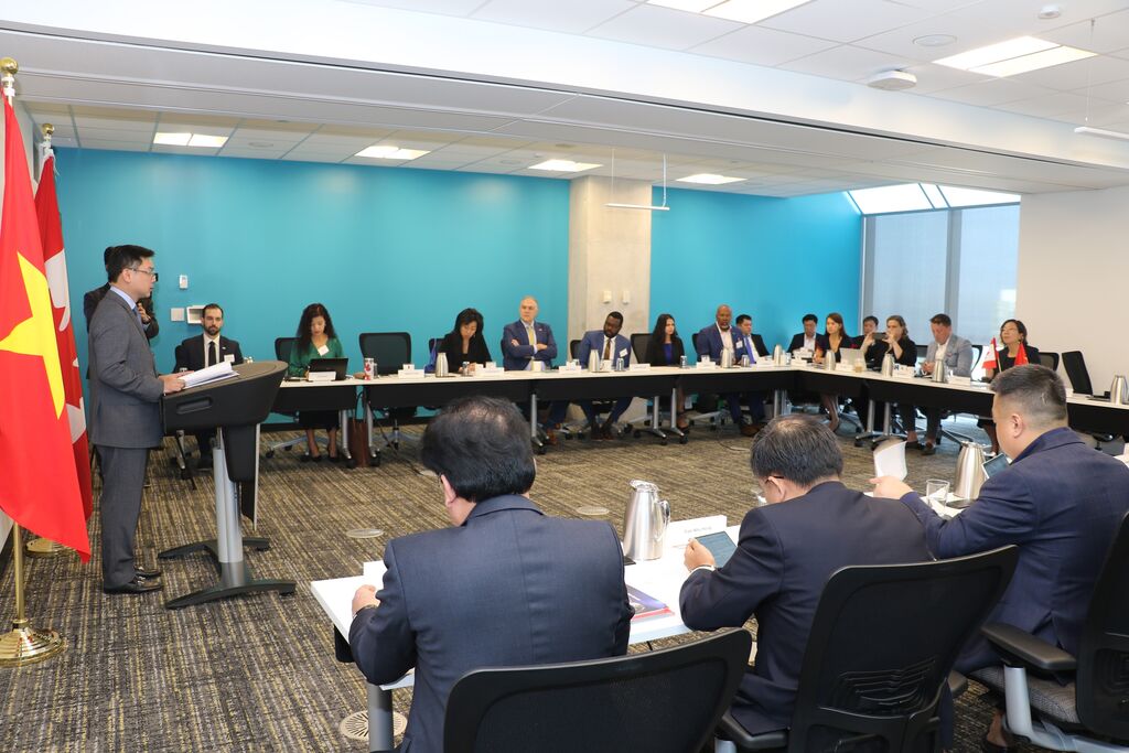 | Séminaire pour connecter les entreprises Vietnam - Canada et explorer des opportunités de coopération dans les domaines de l'énergie, de la fabrication et de la finance à Toronto. |