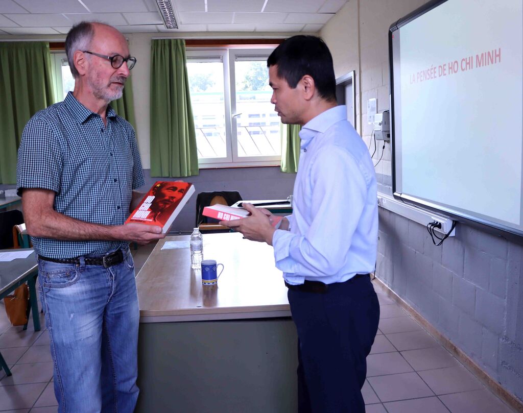 Ce volume bimensuel a été remis par Ralph Coeckemberghs au représentant du Site des vestiges du Président Hô Chi Minh, à l'occasion de l'exposition sur la vie révolutionnaire du Président Hô Chi Minh à Bruxelles.