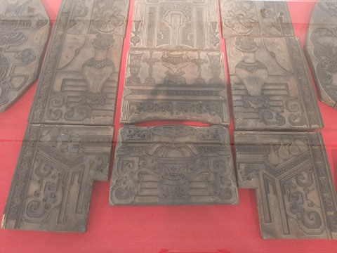 | Des planches de bois de l’artisan Nguyên Dang Chê exposées. |