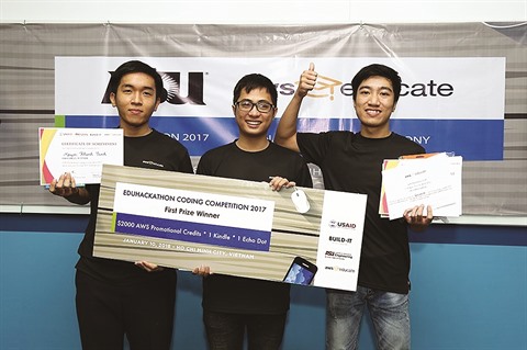 | Le premier prix du concours ASU/AWS EduHackathon 2017 a été attribué à des étudiants vietnamiens. |