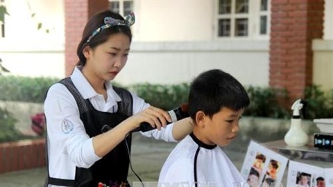 | Coupe de cheveux gratuite au profit d'enfants vietnamiens. |
