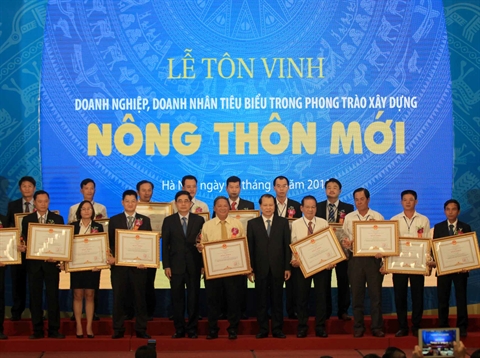 | Cérémonie en l'honneur des entreprises et entrepreneurs exemplaires dans l'édification de la Nouvelle ruralité pendant la période 2010-2015, le 25 juillet à Hanoi. |
