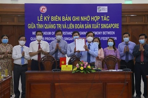 En vertu du protocole d’accord de coopération entre le Comité populaire de la province de Quang Tri (Centre) et la Fédération de fabrication de Singapour (Singapore Manufacturing Federation - SMF), la SMF présentera des experts singapouriens pour travailler avec la province de Quang Tri en vue de l’élaboration de son plan d’aménagement. Les experts singapouriens proposeront également des solutions ; élaboreront la planification générale de la zone économique du Sud-Est de Quang Tri.