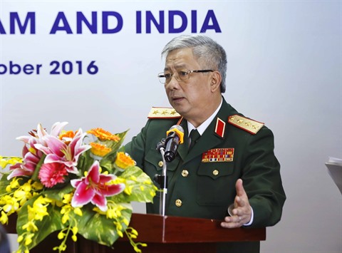 | Le vice-ministre vietnamien de la Défense, le général Nguyên Chi Vinh, prend la parole à la conférence, le 20 octobre à Hanoï. |