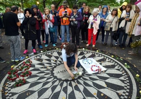 Des fans de John Lennon étaient une centaine en fin de matinée, réunis au mémorial Strawberry Field, espace en bordure de Central Park dédié au musicien assassiné en 1980.