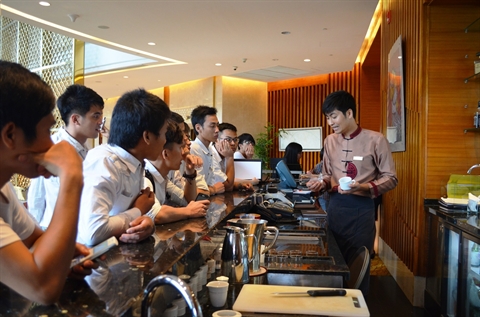 | Des jeunes participent à un cours service de bar au Centre REACH à Hanoi. |