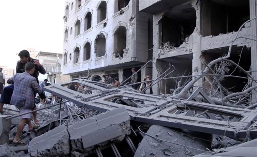 | Lieu d'une frappe aérienne israélienne sur la capitale Sanaa, au Yémen, le 25 septembre. |