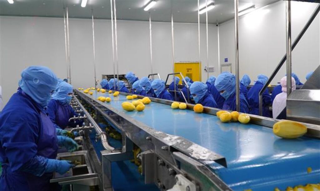 | Des ouvriers travaillent à l'usine de transformation de fruits Nova Thabico, basée dans la province de Dông Thap (Sud). |