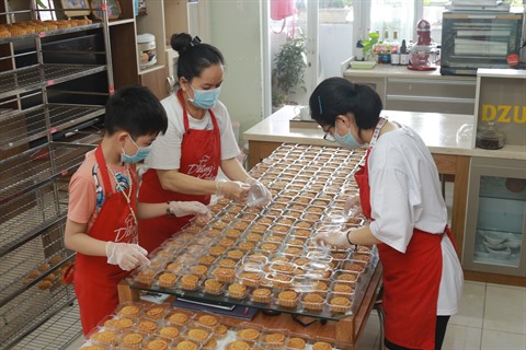 Dès le petit matin, au 21e étage de l'immeuble Tân Huong, situé rue Nguyên Van Công, arrondissement de Tân Phu, à Hô Chi Minh-Ville, le frère et la sœur du nom Khổng et Mme Dung se sont mis au travail pour confectionner de délicieux gâteaux de lune à destination des petits malades hospitalisés. Aujourd'hui, elles ne sont que trois personnes à faire de la pâtisserie.
