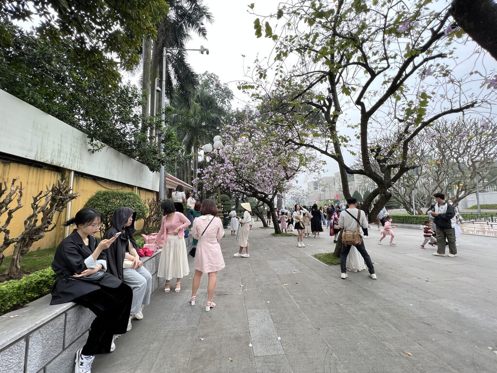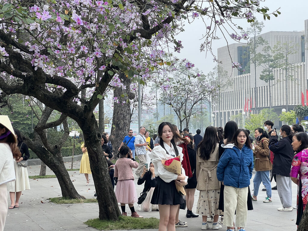 Dès fin février, de nombreuses fleurs printanières s'épanouissent dans les rues de Hanoï. La couleur violet clair des fleurs de bauhinie, le blanc crème de la fleur d’alstonia (ayant pour nom botanique Alstonia scholaris et le nom vietnamien cây sưa) ou le jaune brillant de la fleur d'ébène dont le nom scientifique est Tabebuia aurea, ont attiré de nombreuses personnes dans la rue pour la promenade et la prise de photos.