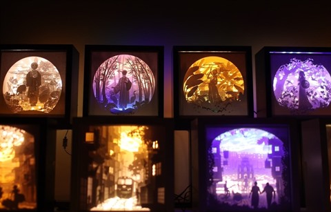 | Les caissons lumineux de Duy présentent d'anciens costumes royaux, des paysages ainsi que la culture traditionnelle du Vietnam. |