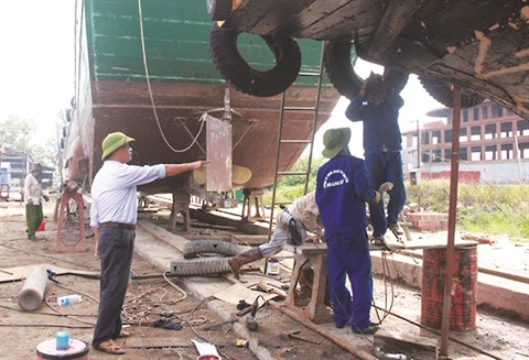 | L’invalide de guerre Hoàng Van Cau (gauche) sur le chantier naval. |
