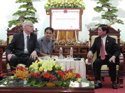 | Le vice-président du Comité populaire de Binh Duong,Trân Thanh Liêm (droite), reçoit |