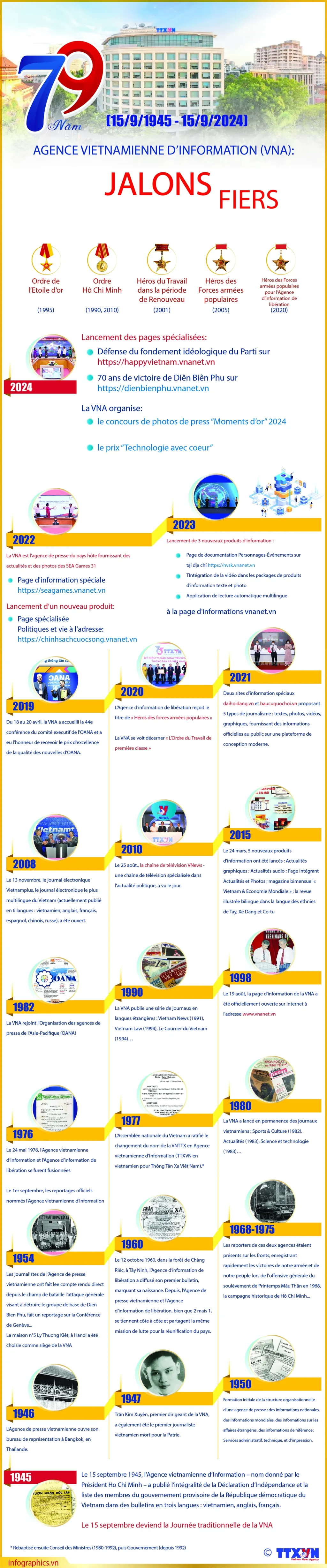 Après 79 ans de développement (15 septembre 1945 - 2024), la VNA a toujours bien rempli sa fonction d'agence de presse d'État, fournissant rapidement des informations nationales et internationales au système, avec des sources d'information officielles continuellement mises à jour.